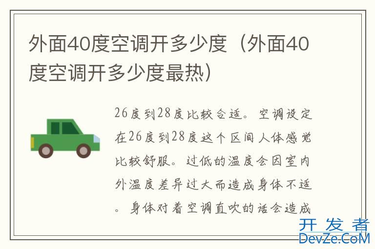 品牌型号:格力空调 系统:KFR-35GW外面40度空调开26度到28度比较合适。空调设定在26度到28度这个区间人体感觉比较舒服。过低的温度会因室内外温度差异过大而造成身体不适,过开发者_如何学编程