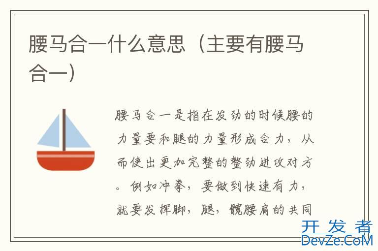 腰马合一是指在发劲的时候腰的力量要和腿的力量形成合力,从而使出更加完整的整劲进攻对方。例如冲拳,要做到快速有力,就要发挥脚,腿,髋腰肩的共同作用,协调配合。并根据肌肉的发力顺序原则,由大块肌肉首先工作
