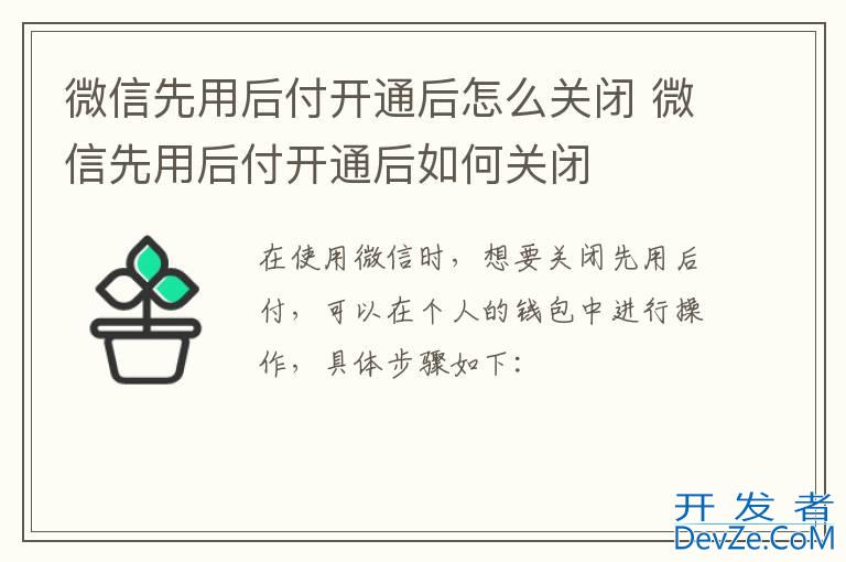 微信先用后付开通后怎么关闭 微信先用后付开通后如何关闭