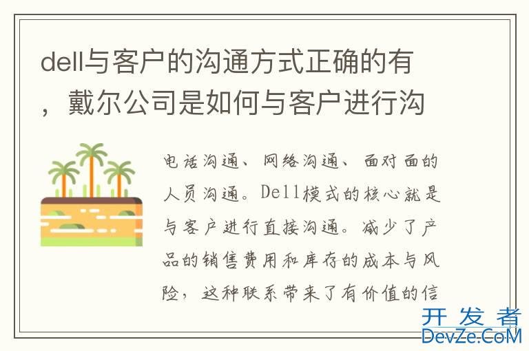 品牌型号:戴尔电脑 系统:Windows11dell与客户的沟通方式正确的有电话沟通、网络沟通、面对面的人员沟通。Dell模式的核心就是与客户进行直接沟通。通过直接沟通,Dell不仅避免了中间环节的加