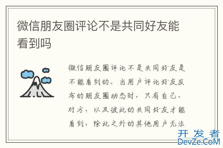 品牌型号:iPhone13 pro pro 系统:iOS 15.6.1 软件版本:微信8.0.26微信朋友圈评论不是共同好友是不能看到的。当用户评论好友发布的朋友圈动态时,只有自己、对方,以及彼此的共