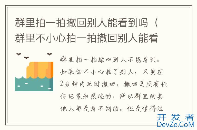 开发者_Go百科1、视情况而定,若对方的微信版本不是最新,可能无法撤回。2、最新版微信拍一拍撤回群里其他人看不到,也没有撤回提示,无论是被拍的人还是微信群的朋友都看不见,撤回拍一拍和闲聊一样,只有撤回
