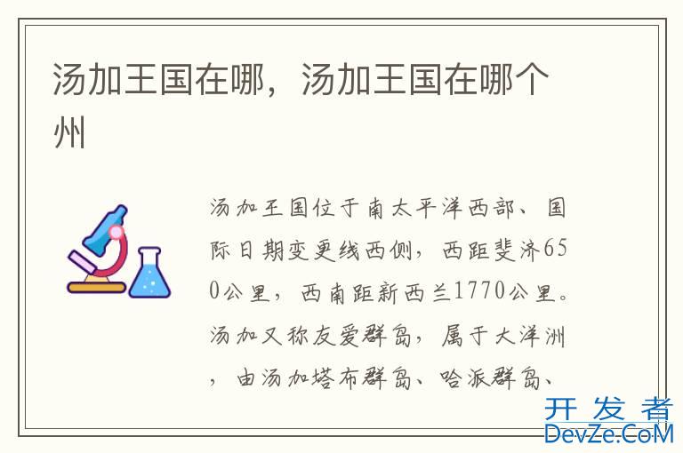 开发者_运维技巧 汤加王国位于南太平洋西部、国际日期变更线西侧,西距斐济650公里,西南距新西兰1770公里。汤加又称友爱群岛,属于大洋洲,由汤加塔布群岛、哈派群岛、瓦瓦乌群岛3个群岛组成,共173个
