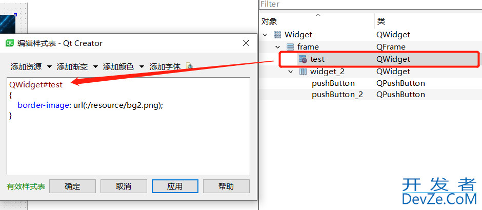 首先说方法,在给widget或者frame或者其他任何类型的控件添加背景图时,在样式表中加入如下代码js,指定某个控件,设置其背景。