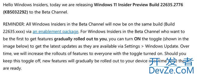 微软今日面向 Windows 11 Beta 预览版用户推送了 22635.2776(KB5032292)更新, 本次更新主要python改进了 Windows Ink 及 Teams 应用共享功能,并改善了任务管理器进程页面中的分组,同时修复了一些 Bug。