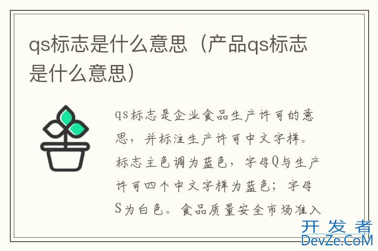 qs标志是企业食品生产许可的意思,并标注“生产许可”中文字样。标志主色调为蓝色,字母Q与生产许可四个中文字样为蓝色;字母“S”为白色。食品质量安全市场准入制度,自2001年开始,首先在米、面、油、酱油