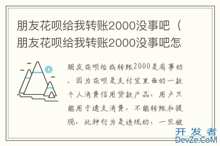 品牌型号:iPhone13 pro pro 系统:IOS15.5 软件版本:支付宝10.2.76.8000朋友花呗给我转账2000是有事的。因为花呗是支付宝里面的一款个人消费信用贷款产品,用户只能用于