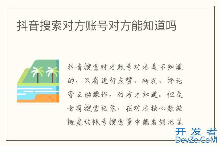 品牌型号:iPhone13 pro pro 系统:IOS15.5 软件版本:抖音21.5.0抖音搜索对开发者_JAVA技巧方账号对方是不知道的,只有进行点赞、转发、评论等互动操作,对方才知道。但是会有