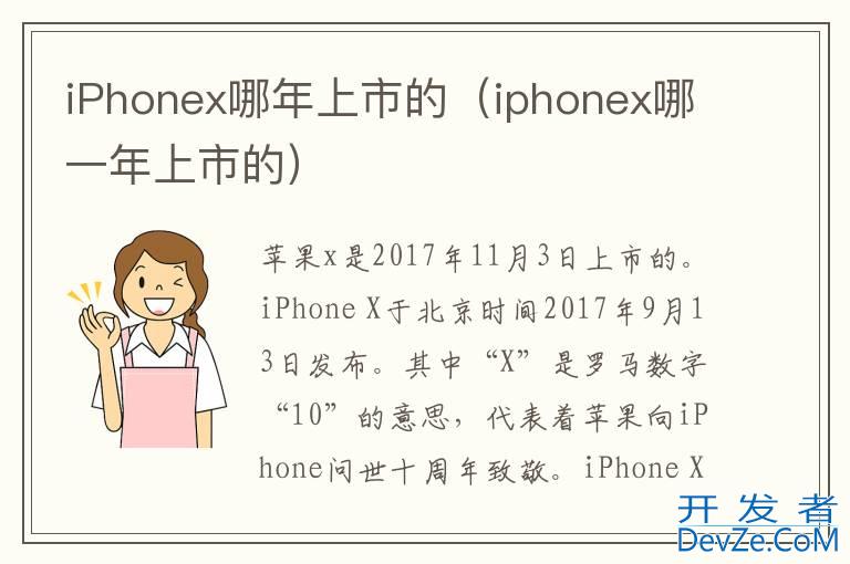 品牌型号:iPhone X 系统:iOS 15.5iPhonex是2017年11月3日上市的。iPhone X于北京时间2017年9月13日发布。其中“X”是罗马数字“10”的意思,代表着iPhone