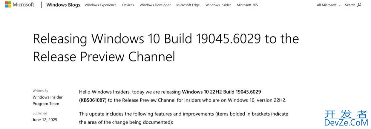 微软今天开始向 Release Preview 频道推送 Windows 10 预览版 KB5061087 更新,主要涉及移动运营商配置文件、curl 工具升级、欧洲经济区 (EEA) 默认浏览器设置调整等,用户更新后版本升至 Build 19045.6029。