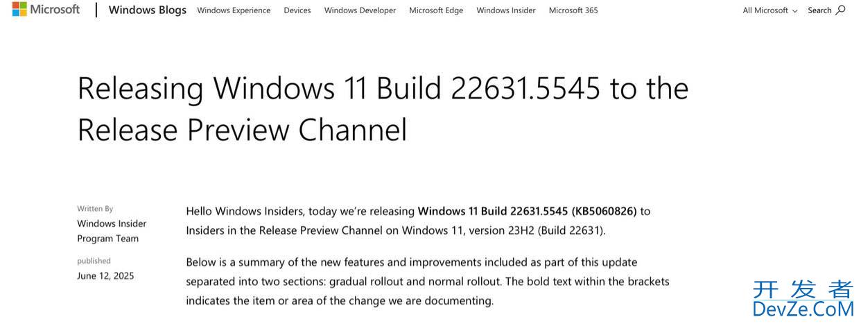 微软现已向 Release Preview 频道的 Windows Insider 项目成员,推送适用于 Windows 11 24H2 的 KB5060826 更新,用户安装后版本号升至 Build 22631android.5545。