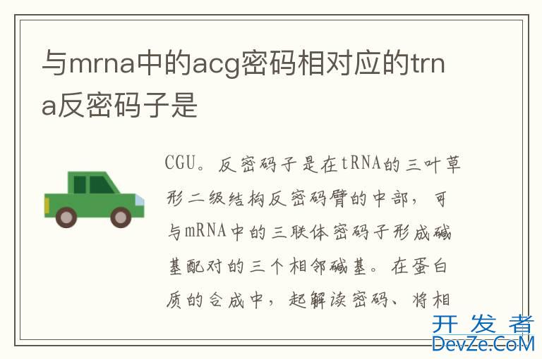 品牌型号:联想拯救者Y9000P 系统:Windows11与mrna中的acg密码相对应的trna反密码子是CGU。反密码子是在tRNA的三叶草形二级结构反密码臂的中部,可与mRNA中的三联体密码子形