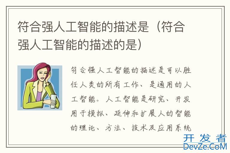 品牌型号:iPhone13 pro pro 系统:IOS15.5符合强人工智能的描述是可以胜任人类的所有工作、是通用的人工智能。人工智能是研究、开发用于模拟、延伸和扩展人的智能的理论、方法、技术及应用