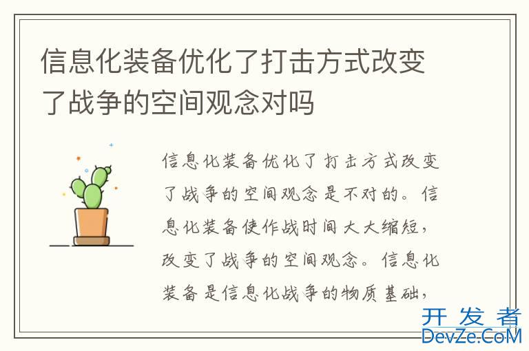 品牌型号:联想拯救者Y9000P 系统:Windows11开发者_C百科 信息化装备优化了打击方式改变了战争的空间观念是不对的。信息化装备使作战时间大大缩短,改变了战争的空间观念。信息化装备是信息化战