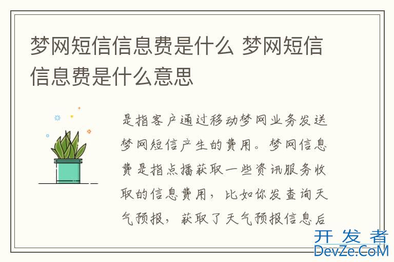 品牌型号:iPhone13 pro开发者_运维知识库 pro 系统:IOS15.5梦网短信信息费是指客户通过移动梦网业务发送梦网短信产生的费用。梦网信息费是指点播获取一些资讯服务收取的信息费用,比如你