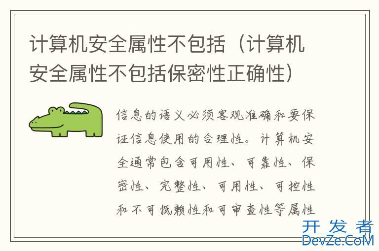 品牌型号:联想拯救者Y9000P 系统:Windows11计算机安全的属性不包括信息的语义必须客观准确和要保证信息使用的合理性。计算机安全通常包含可用性、可靠性、保密性、完整性、可用性、可控性和不可抵