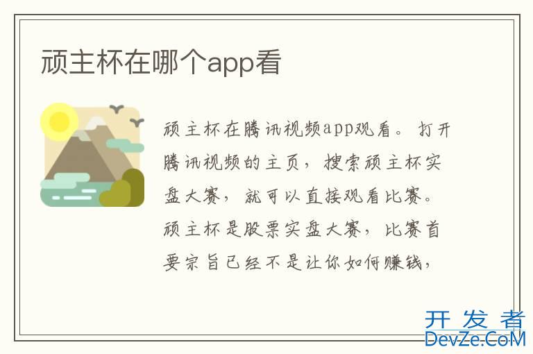 品牌型号:iPhone13 pro pro 系统:iOS 15.6 软件版本:腾讯视频顽主杯在腾讯视频app观看。打开腾讯视频的主页,搜索顽主杯实盘大赛,就可以直接观看比赛。顽主杯是股票实盘大赛,比赛