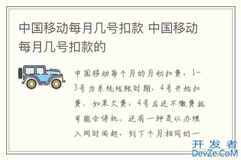品牌型号:iPhone13 pro pro 系统:iOS 15.6 软件版本:中国移动7.9.1中国移动每个月的月初扣费,1-3号为系统结账时期,4号开始扣费。如果欠费,4号后还不缴费就可能会停机。还