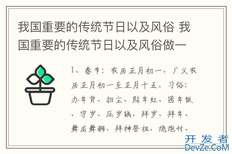 1、春节:农历正月初一,广义农历正月初一至正月十五。习俗:新春贺岁围绕祭祝祈年为中心,以除旧布新、迎禧接福、拜神祭祖、祈求丰年等活动形式展开,内容丰富多彩,热闹喜庆,年味浓郁。我国过年历史悠久,在传承