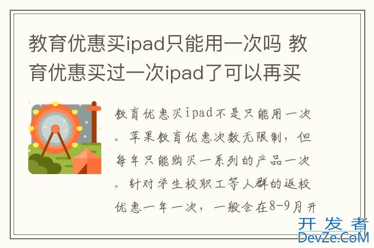 品牌型号:iPad air Pro2021 系统:iPad airOS 15.4教育优惠买ipad不是只能用一次。iPhone教育优惠次数无限制,但每年只能购买一系列的产品一次。针对学生校职工等人群的