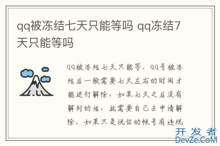 品牌型号:iPhone13 pro pro 系统:iOS 15.6.1 软件版本:QQ8.9.5qq被冻结七天只能等。qq号被冻结后一般需要七天左右的时间才能进行解除,如果七天之后没有解封的话,就需要