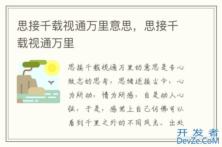 思接千载视通万里的意思是专心致志的思考,思绪连接古今,心为所动,情为所感,自是动人心弦,于是,感觉上自己仿佛可以看到千里之外的不同风光。出处:刘勰《文心雕龙》称之为“神思”的:“文之思也,其神远矣。故