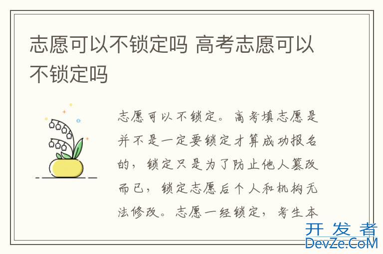 品牌型号:联想拯救者Y9000P 系统:Windows 11开发者_如何学运维 志愿可以不锁定。高考填志愿是并不是一定要锁定才算成功报名的,锁定只是为了防