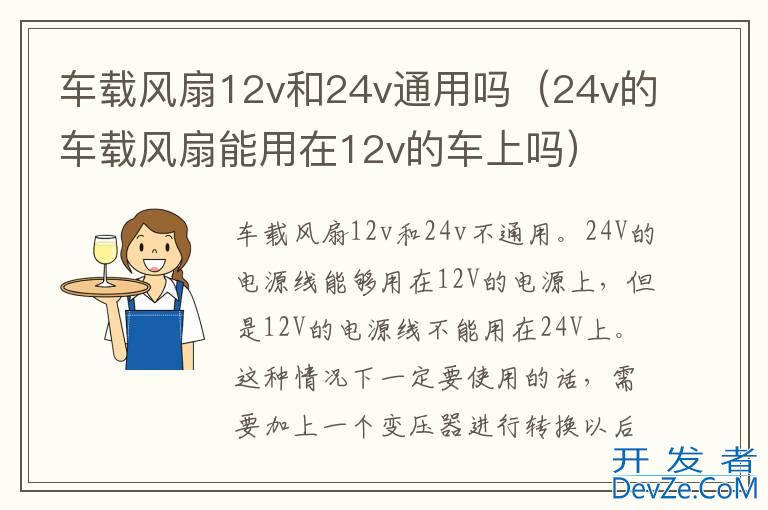 品牌型号:绿联车载风扇 系统:LP436-10421车载风扇12v和24v不通用。24V的电源线能够用在12V的电源上,但是12V的电源线不能用在24V上。这种情况下一定要使用的话,需要加上一个变压器