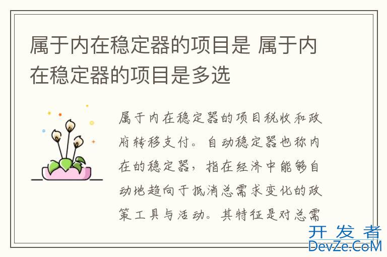 品牌型号:联想拯救者Y9000P 系统:Windows 11属于内在稳定器的项目税收开发者_开发技巧和政府转移支付。内在稳定器是自动稳定器的别名,自动稳定器也称内在的稳定器,指在经济中能够自动地趋向于