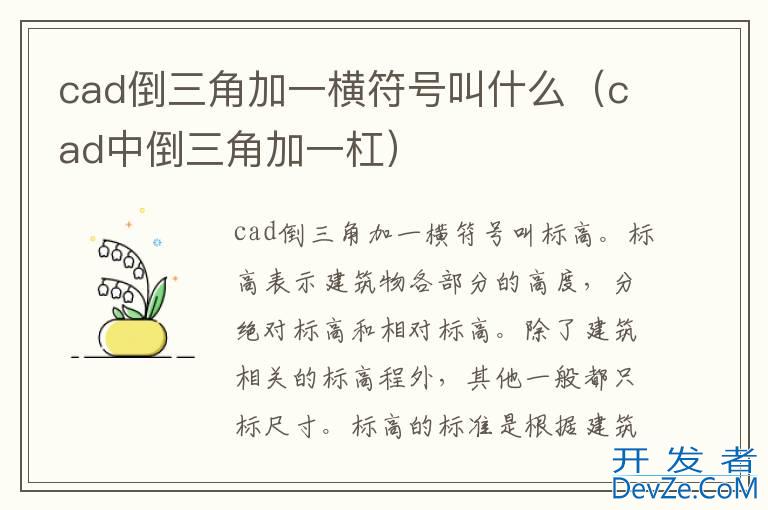 品牌型号:联想拯救者Y9000P 系统:Windows 11 软件版本:Autocad 2022cad倒三角加一横符号叫标高。标高表示建筑物各部分的高度,分绝对标高和相对标高。除了建筑相关的标高程外,