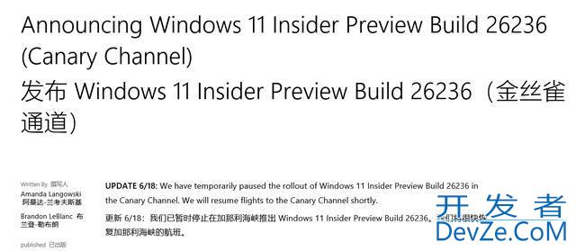 微软更新支持文档,宣布临时撤回 Canary 频道的 Windows 11 Build 26236 预览版更新,而从种种迹象来看,微软本次撤回是为了处理“回顾”(Recall)功能。