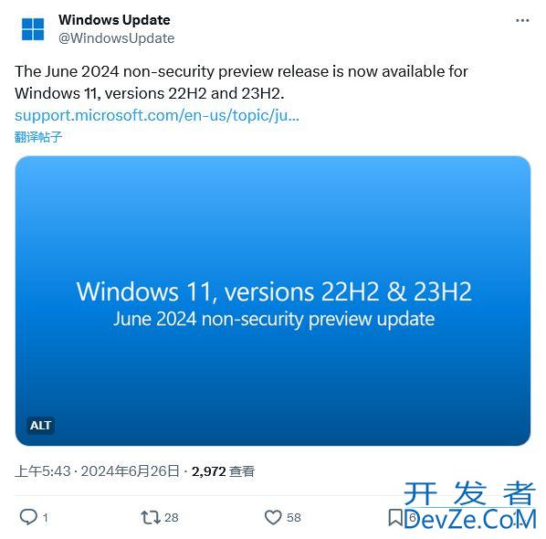 微软昨日(6 月 25 日)面向 Wiandroidndows 11 系统发布可选更新 KB5039302,22H2 用户安装后版本号升至 Build 22621.3810;23H2 用户安装后版本号升至 Build 22631.3810。
