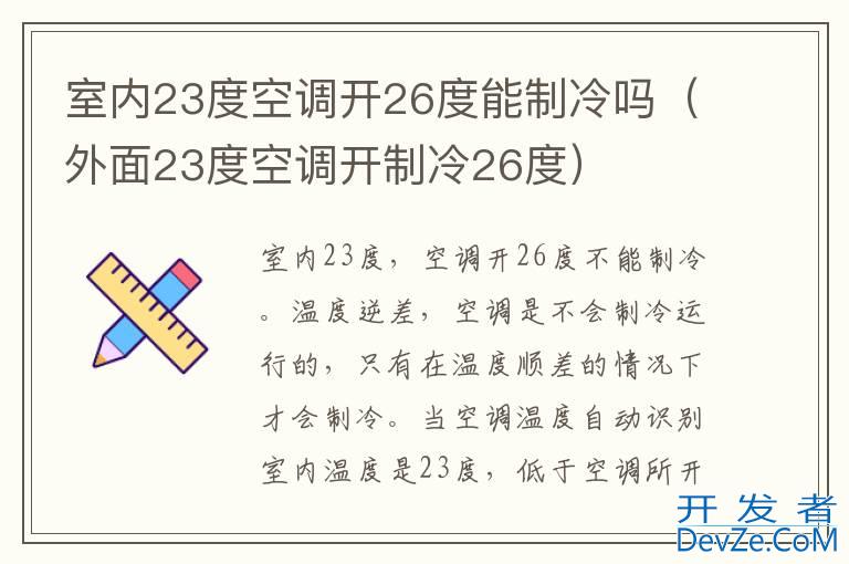 品牌型号:美的空调 系统:KFR-35GW/N8XHC1开发者_运维百科 室内23度,空调开26度不能制冷。温度逆差,空调是不会制冷运行的,只有在温度顺差的情况下才会制