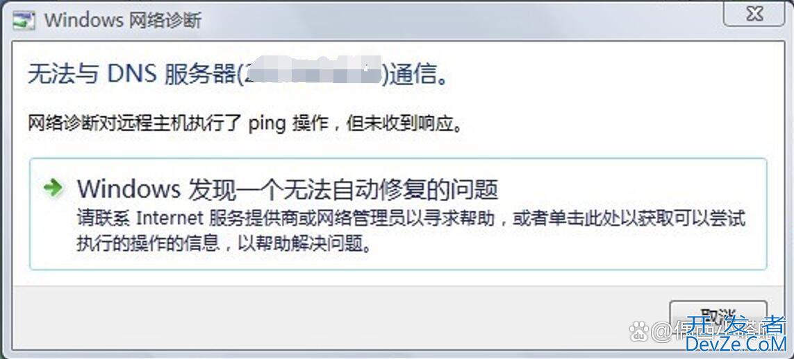 Windows 网络诊断提示,无法与 DNS 服务器(这里是ip地址)通信。 http://www.devze.comDNS服务器不可用是一个相对常见的问题,可能导致用户无法访问特定的网站或服务。这种问题可能由多种原因引起,包括网络连接问题、