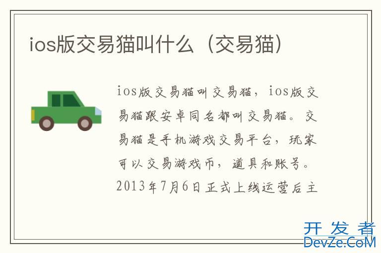 品牌型号:iPhone13 pro pro 系统:iOS 15.6.1 软件版本:交易猫7.5.2ios版交易猫叫交易猫,ios版交易猫跟安卓同名都叫交易猫。交易猫是手机游戏交易平台,玩家可以交易游戏