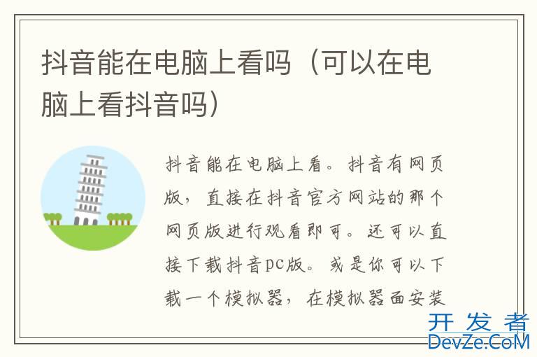 品牌型号:联想拯救者Y9000P 系统:Windows 11 软件版本:抖音1.2.0抖音能在电脑上看。抖音有网页版,直接在抖音官方网站的那个网页版进行观看即可。还可以直接下载抖音pc版。或是你可以下
