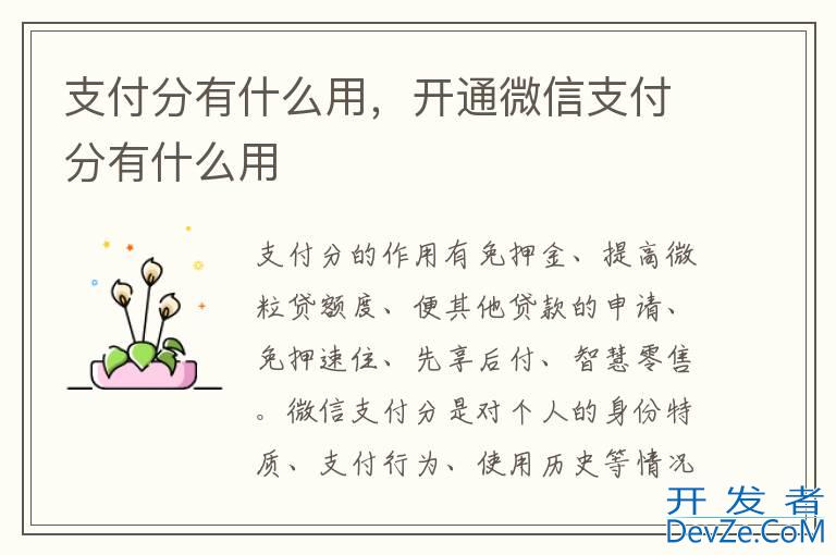 品牌型号:iPhone13 pro pro 系统:iOS 15.6.1 软件版本:微信8.0.27支付分的作用有免押金、提高微粒贷额度、便其他贷款的申请、免押速住、先享后付、智慧零售。微信支付分是对个