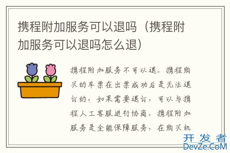 品牌型号:iPhone13 pro pro 系统:iOS 15.6.1 软件版本:携程旅行8.51.4携程附加服务不可以退。携程购买的车票在出票成功后是无法退订的,如果需要退订,可以与携程人工客服进行