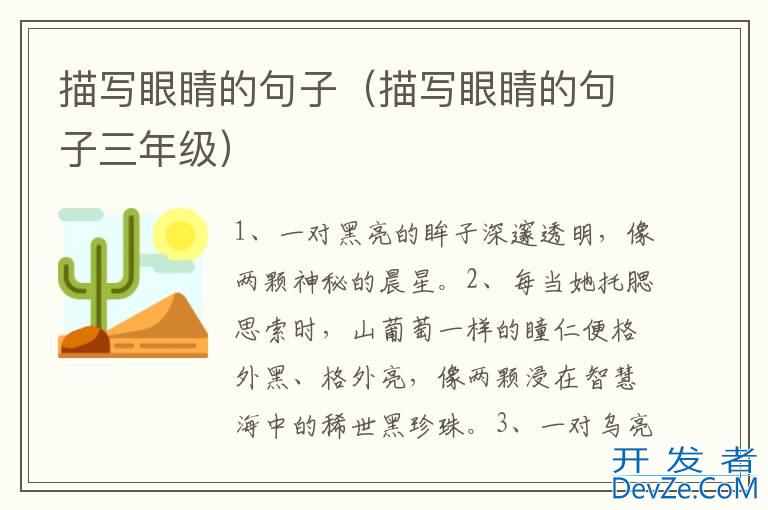 1、一对黑亮的眸子深邃透明,像两颗神秘的晨星。2、每当她托腮思索时,山葡萄一样的瞳仁便格外黑、格外亮,像两颗浸在智慧海中的稀世黑珍珠。3、一对乌亮乌亮的大眼睛晶莹透澈,宛如两潭秋水。4、眼睛是心灵的窗
