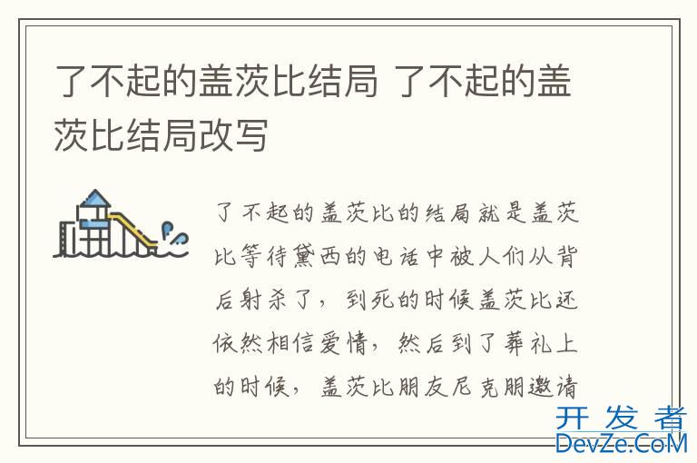 了不起的盖茨比的结局就是盖茨比等待黛西的电话中被人们从背后射杀了,到死的时候盖茨比还依然相信爱情,然后到了葬礼上的时候,盖茨比朋友尼克朋邀请了黛西来参加,结果遭到了仆人的拒绝,到了故事的最后,关爱盖茨