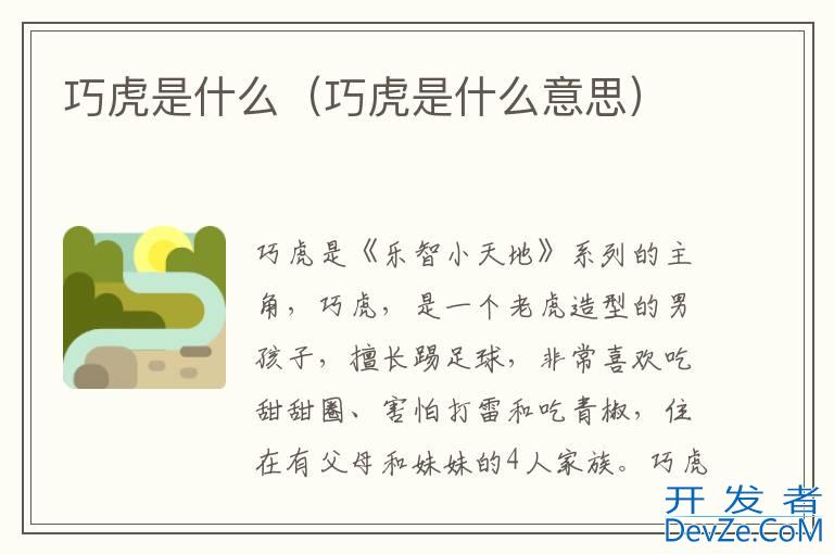 巧虎是《乐智小天地》系列的主角,巧虎,是一个老虎造型的男孩子,擅长踢足球,非常喜欢吃甜甜圈、害怕打雷和吃青椒,住在有父母和妹妹的4人家族。巧虎乐观开朗、健康活泼,好奇心强,很有正义感,有时缺乏毅力。《