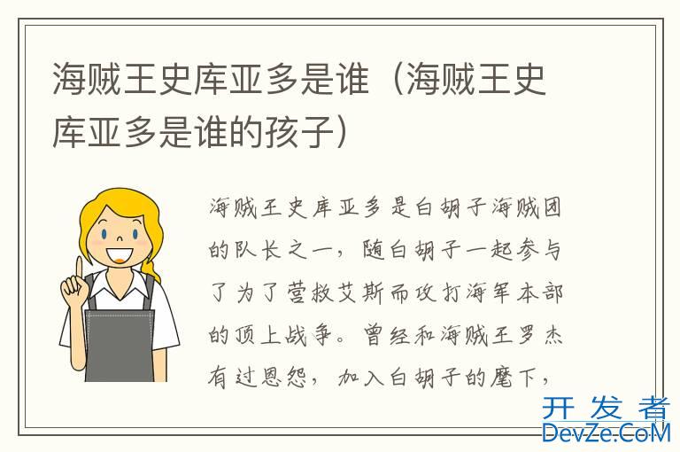 海贼王史库亚多是白胡子海贼团的队长之一,随白胡子一起参与了为了营救艾斯而攻打海军本部的顶上战争。曾经和海贼王罗杰有过恩怨,加入白胡子的麾下,不过依然保持独立的海贼团。大涡蜘蛛斯库亚德的原来所在的海贼团