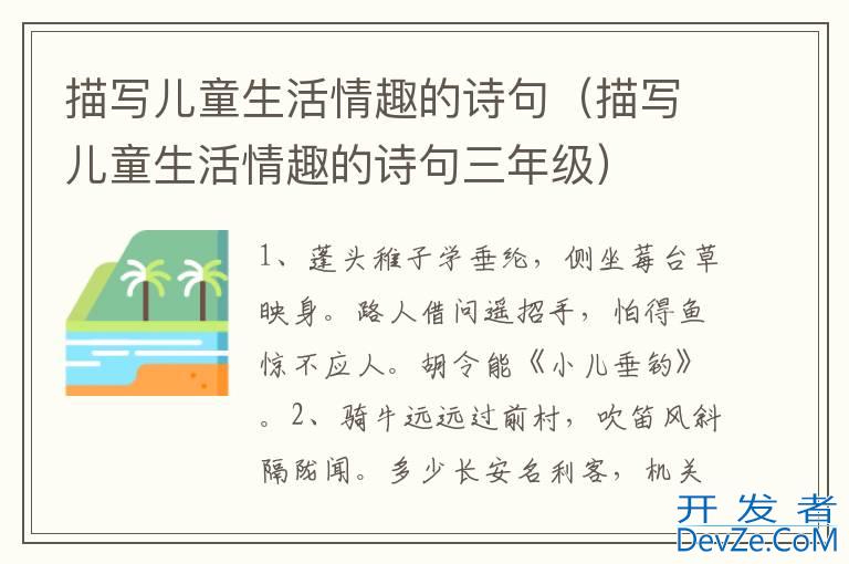 1、蓬头稚子学垂纶,侧坐莓台草映身。路人借问遥招手,怕得鱼惊不应人。胡令能《小儿垂钓》。2、骑牛远远过前村,吹笛风斜隔陇闻。多少长安名利客,机关用尽不如君。黄庭坚《牧童》。3、梅子留酸软齿牙,芭蕉分绿