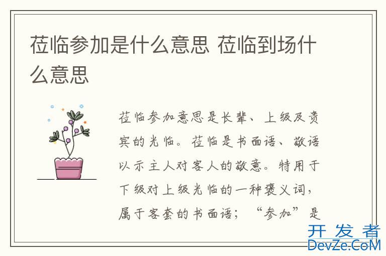 开发者_如何学Python 莅临参加意思是长辈、上级及贵宾的光临。莅临是书面语、敬语以示主人对客人的敬意。特用于下级对上级光临的一种褒义词,属于客套的书面语;“参加”是指参与