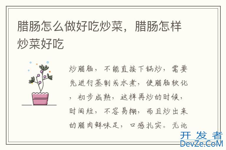 主料:香开发者_JS百科肠100 g白菜心200g辅料:蒜粉水淀粉适量调料:食用油盐2 g鸡精2 g香肠煮心做法: