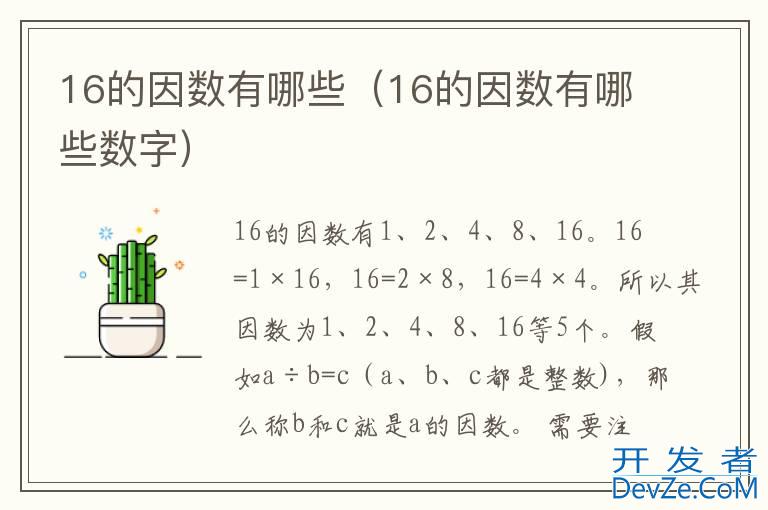 大家好,小育来为大家讲解下。16的因数有哪些,16的因数有哪些很多人还不知道,现在让我们一起来看看吧!
