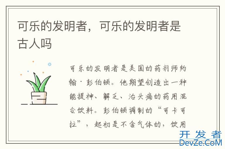 可乐的发明者是美国的药剂师约翰·彭伯顿。他期望创造出一种能提神、解乏、治头痛的药用混合饮料。彭伯顿调制的“可卡开发者_Go百科可拉”,起初是不含气体的,饮用时兑上凉水,只是由于一次偶然的意外,才变成了