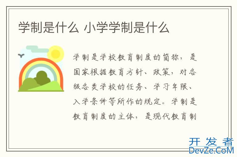 学制是学校教育制度的简称,是国家根据教育方针、政策,对各级各类学校的任务、学习年限、入学条件等所作的规定。学制是教育制度的主体,是现代教育制度的核心内容。在现代教育制度的形成过程中,最先形成和完善起来
