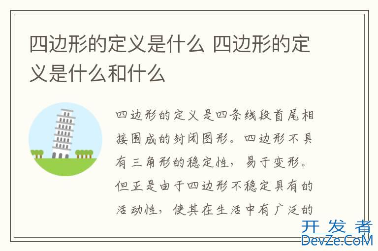 开发者_开发知识库四边形的定义是四条线段首尾相接围成的封闭图形。四边形不具有三角形的稳定性,易于变形。但正是由于四边形不稳定具有的活动性,使其在生活中有广泛的应用,如拉伸门等拉伸、折叠结构。连接四边形