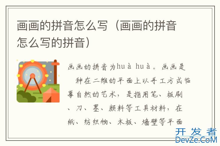 开发者_Python百科 画画的拼音为huà huà。画画是一种在二维的平面上以手工方式临摹自然的艺术,是指用笔、板刷、刀、墨、颜料等工具材料,在纸、纺织物、木板、墙壁等平面(二度空间)
